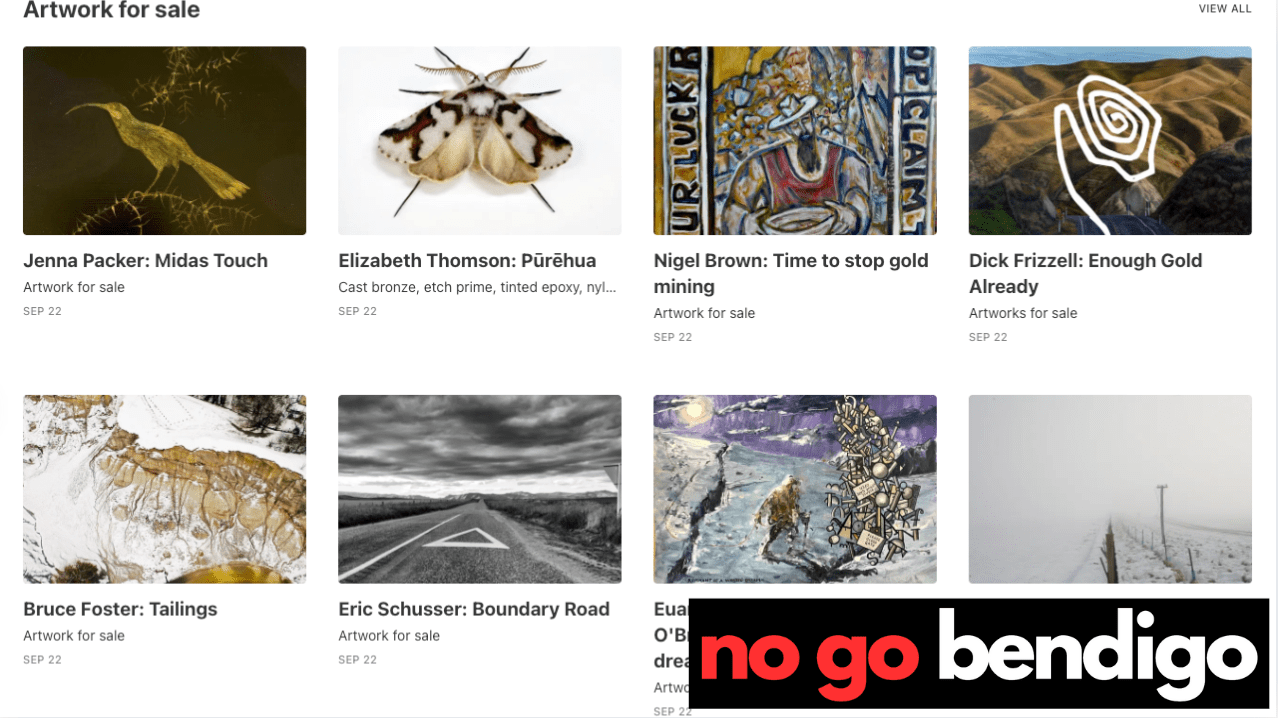 We are delighted to have the support of nine wonderful artists who have gifted artworks to an exhibition to support the mahi Sustainable Tarras does. Under the banner of “No Go Bendigo” (which we think has a great ring to it), they have today launched an online exhibition of their works. 100% of the proceeds go to Sustainable Tarras to fight the fast-tracked mine. Link to the exhibition is in the comments below. Please share with your networks.