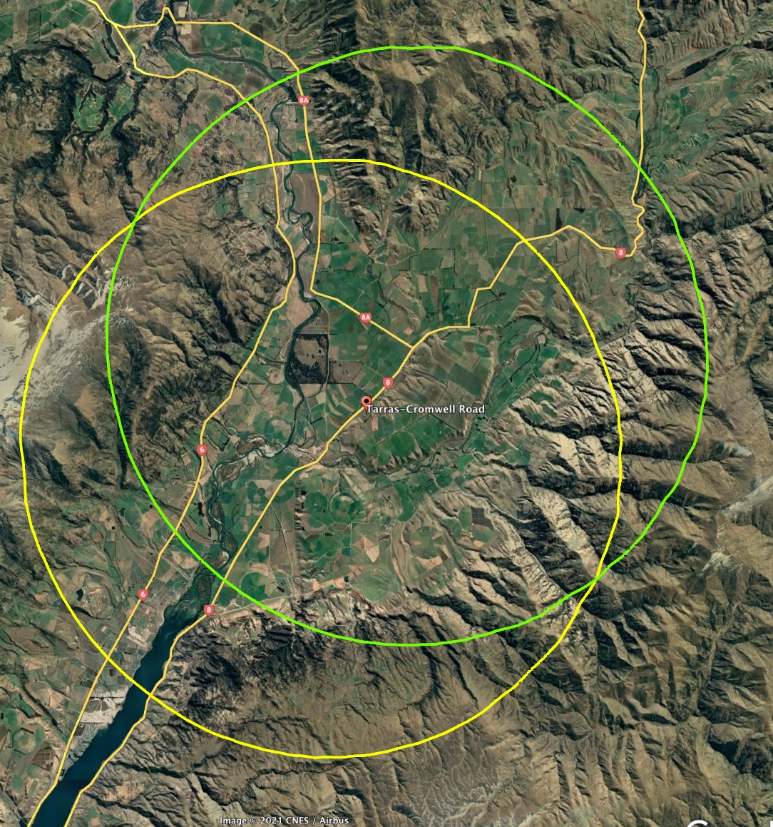 Around Christchurch Airport, the bird exclusion zones extend 8-11 km from the airport boundaries. Imposing this restriction onto the Cromwell Valley, the exclusion area would include the Bendigo Wetlands Conservation area, over which planes would be flying low on any of the potential approach/take-off regimes recently proposed by CIAL.