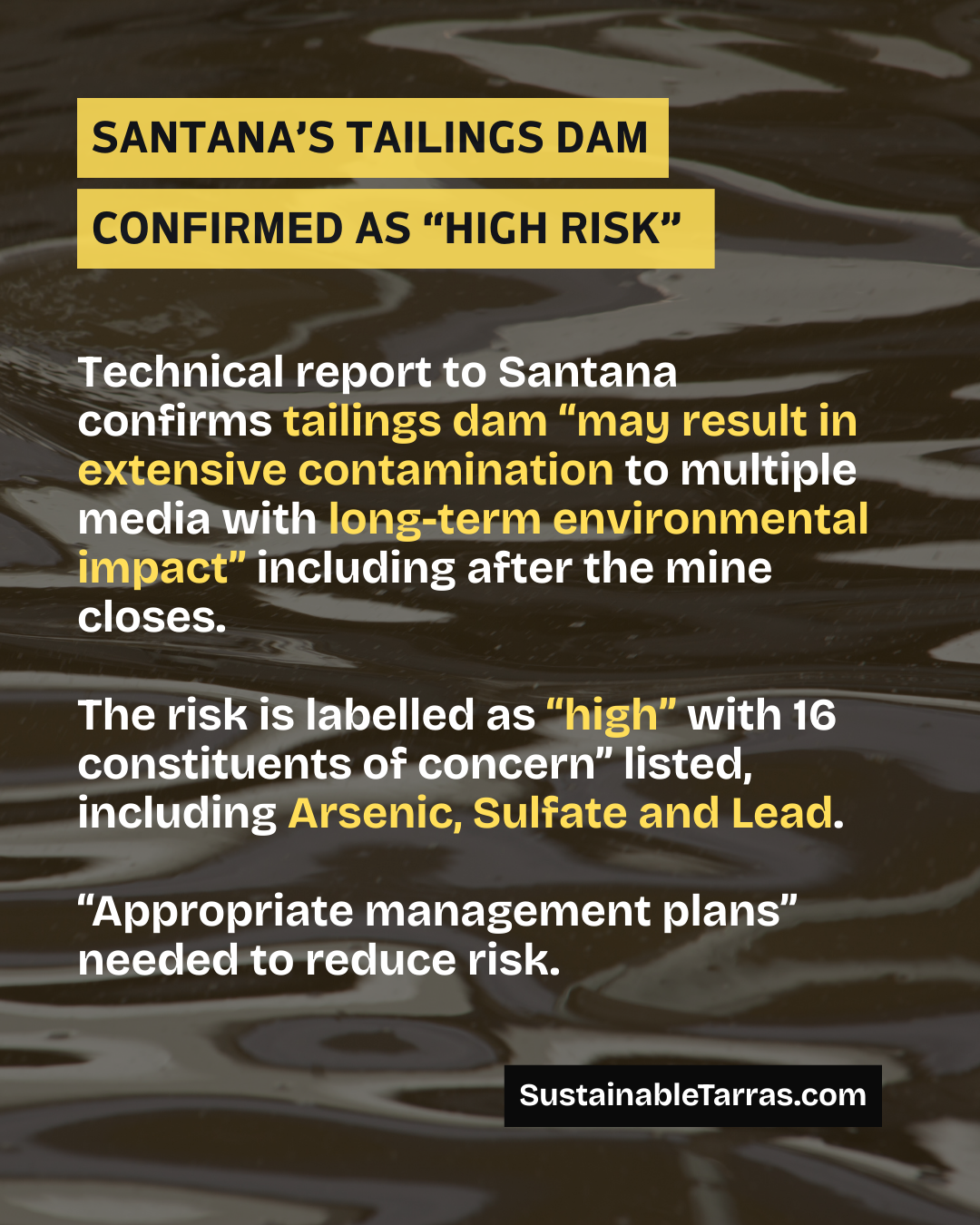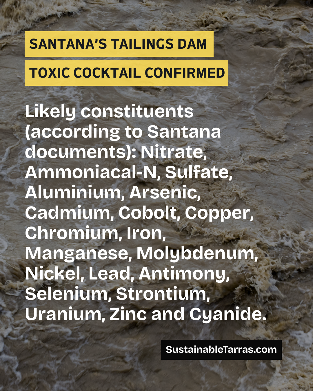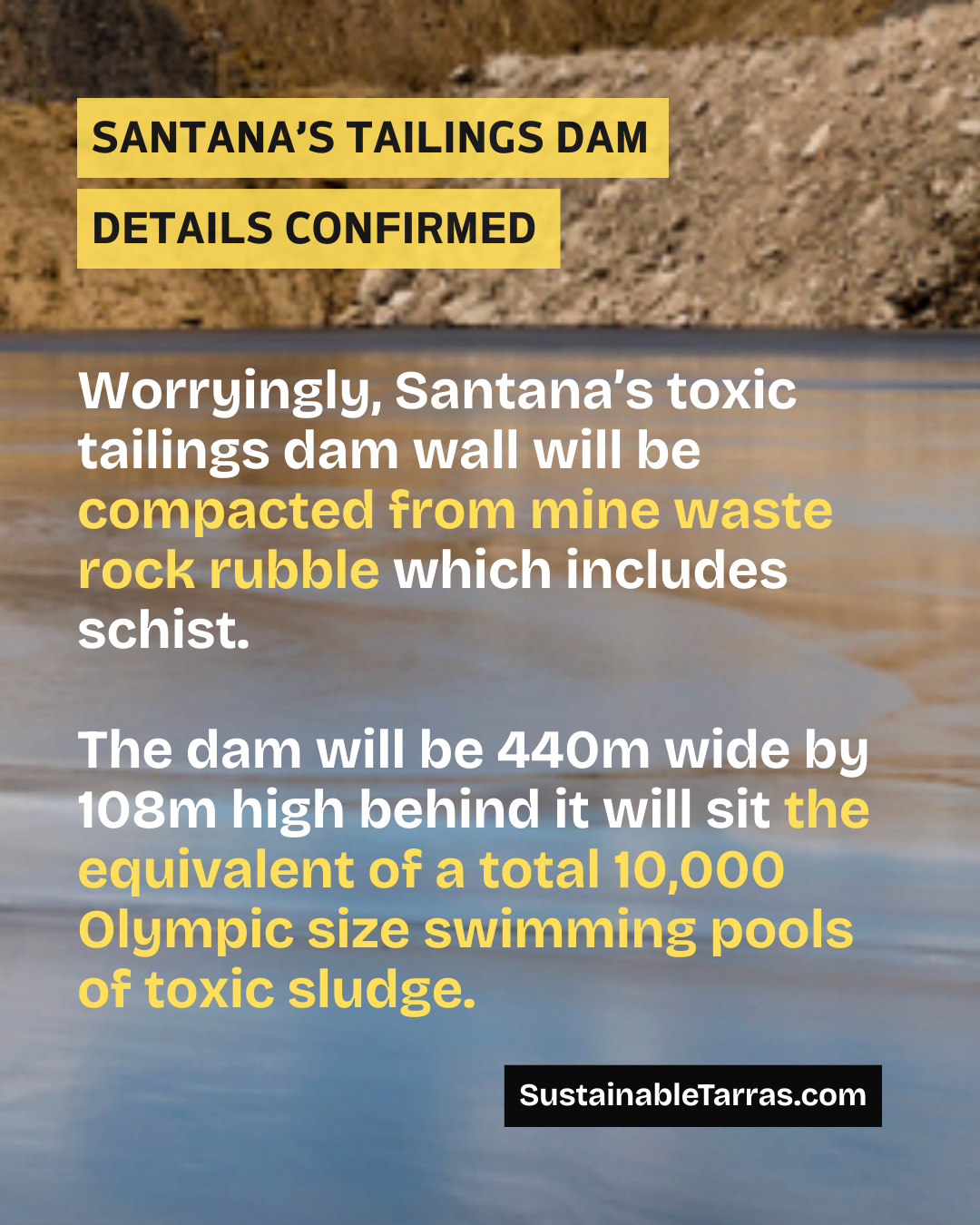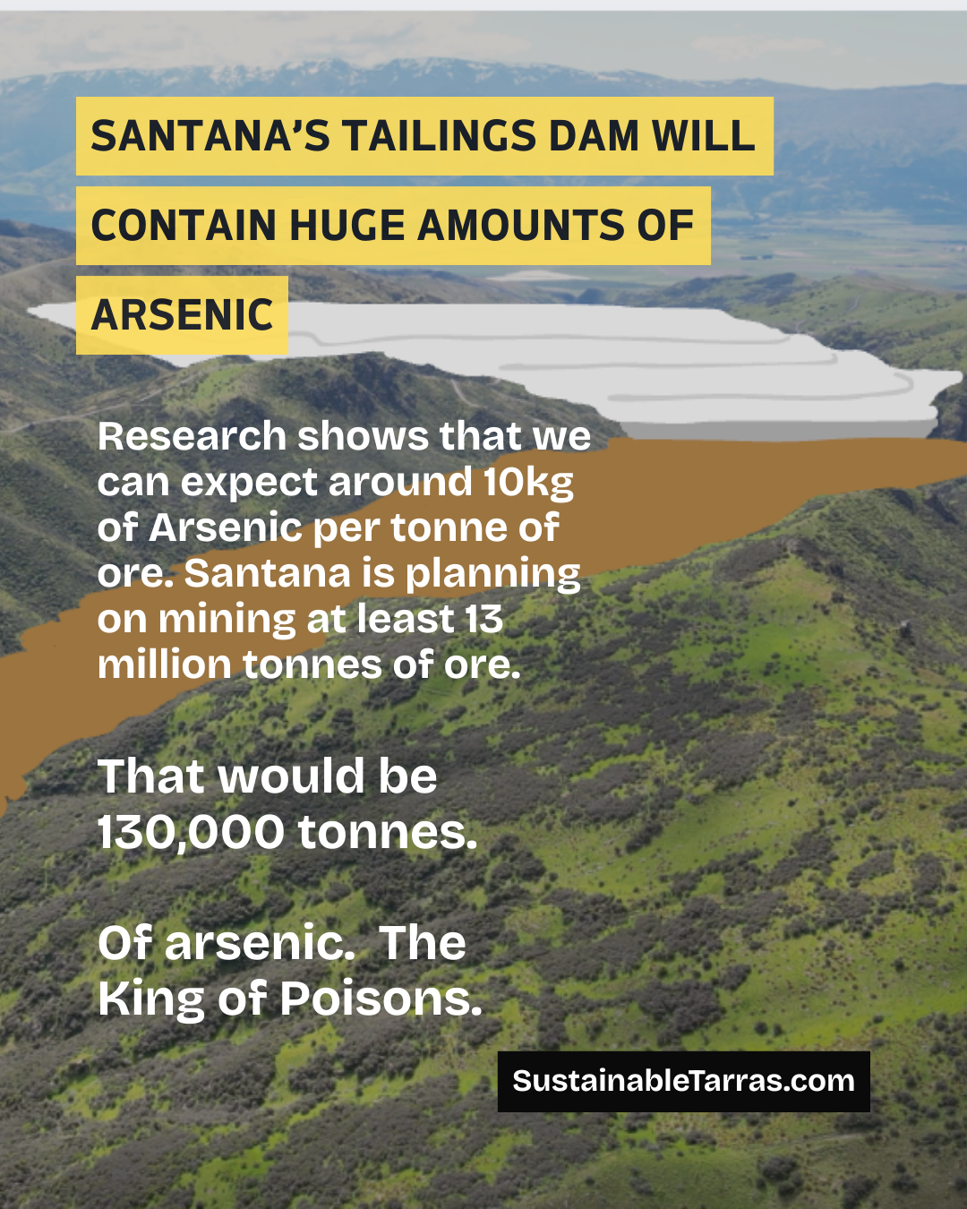 Santana Minerals will build a tailings dam to contain the slurry that results from excavating the rock from the gold. This will be located at the headwaters of Shepherds Creek, so they will be diverting the creek.
